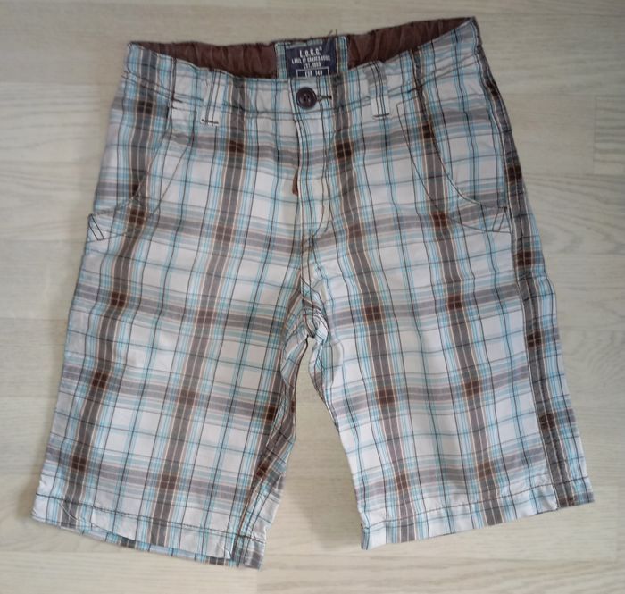 Bermuda à carreaux bleu gris blancs Marque : LOGG T. 140 cm Très bon état général