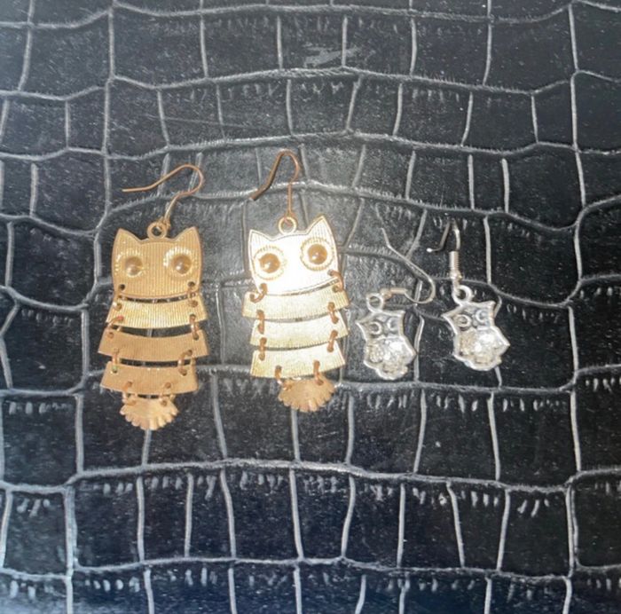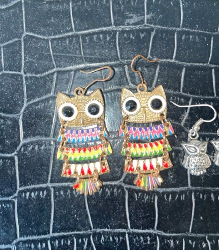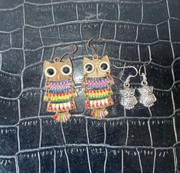 Lot de 2 jolie paire Boucle d’oreille Hibou et chouette Quasi neuf Peut être vendu séparément