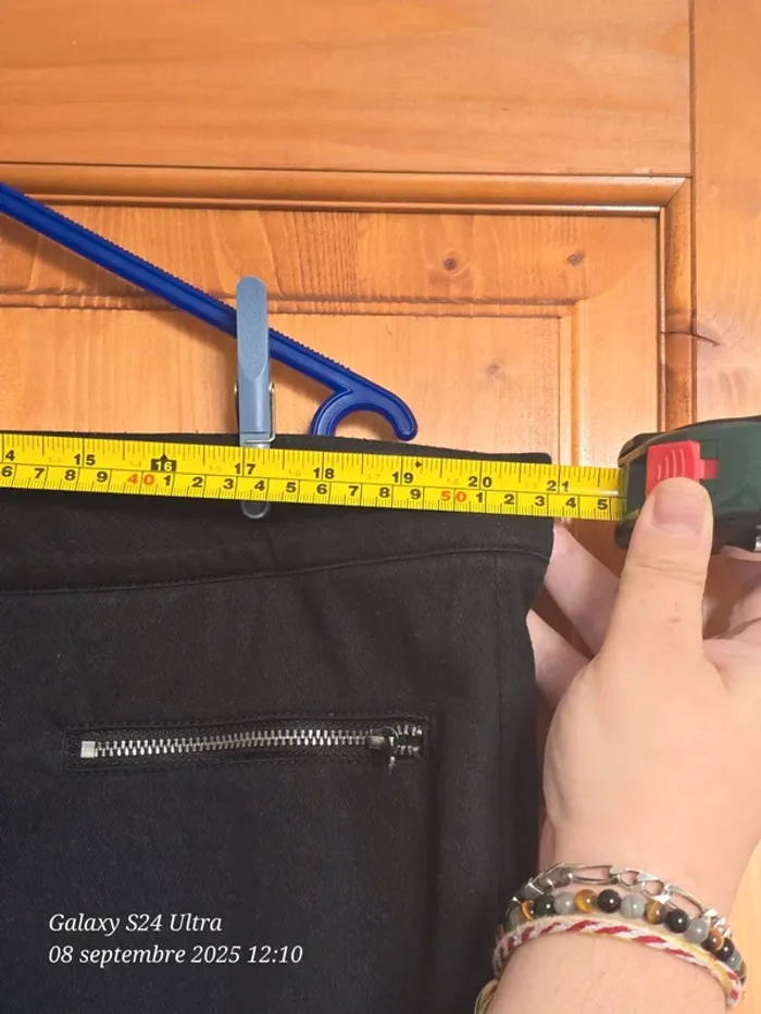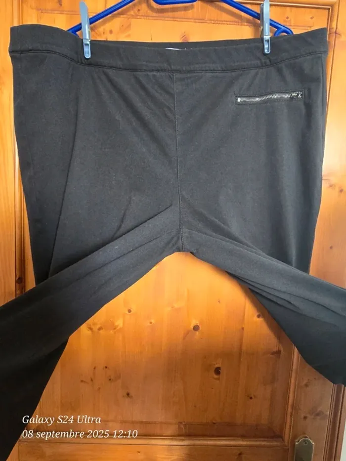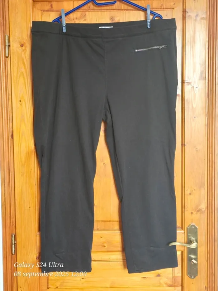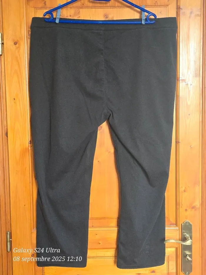 Pantalon legging noir avec fausse poche porte 3-4 fois, taille 50/52. Pas usé entre les jambes, donc en très bonne état. Voir les dimensions longueur et largeur sur les photos