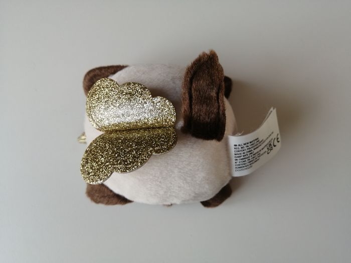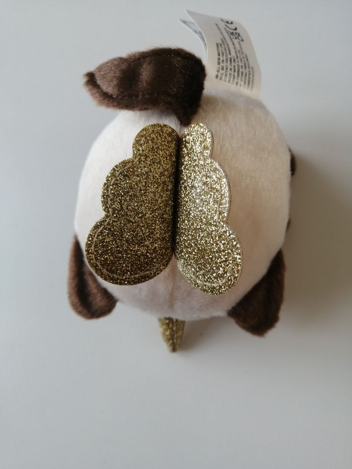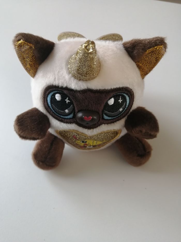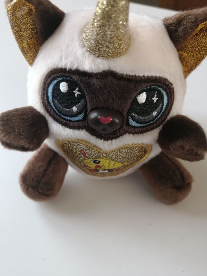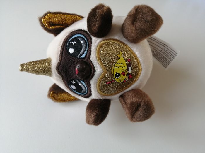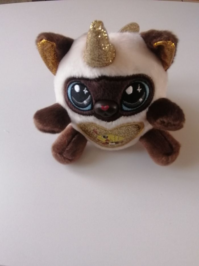 petite peluche boule ronde rainbocorns zuru licorne crème, marron et doré à paillettes environ 11 cm