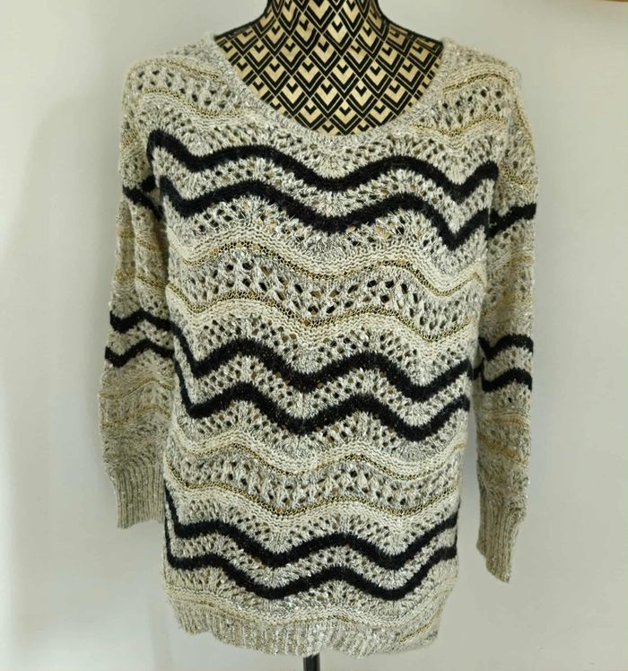 Pull ajouré fil doré Naf Naf taille S - photo numéro 1