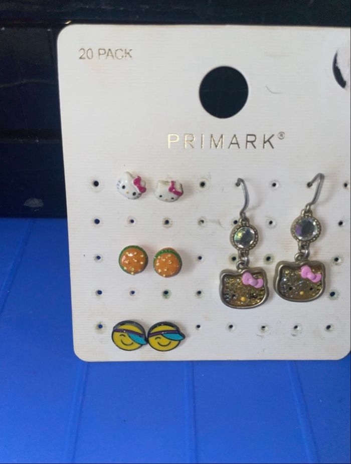 Lot de jolie paire de boucle d’oreille 2 paire Hello Kitty 1 paire Hamburger 🍔 1 paire Smiley Quasi neuf peu mis