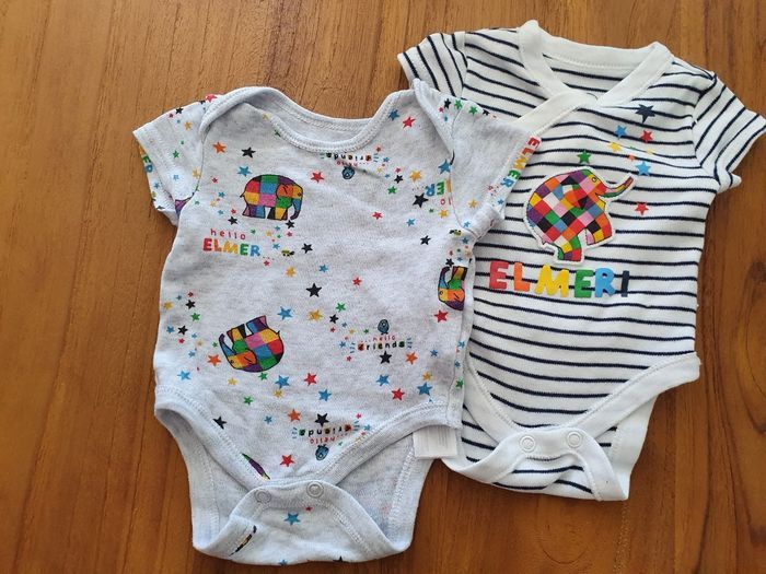 Lot de 2 bodys elmer Très peu porté Très bon état Taille 1 mois (54cm)