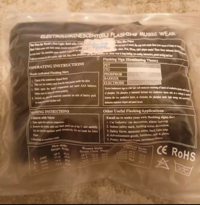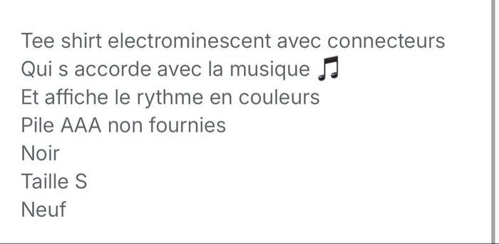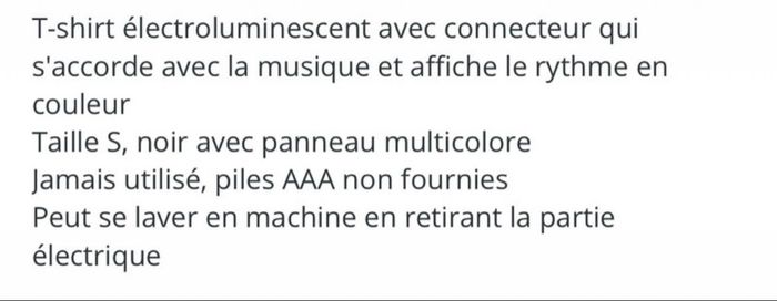 Tee shirt Electrominecsent Taille S Noir et coloré Neuf