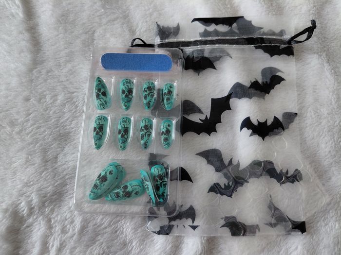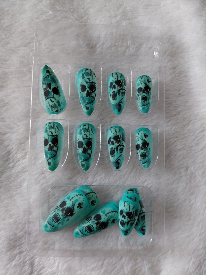 Ensemble de Faux ongles pour Halloween 24 pieces Noir, Vert et Blanc avec Finition Mate Design Squelette effrayant Amovibles pour Manucures Élégantes Spécial Halloween Œuvres d'art d'ongles dramatiques Nail Art Durable