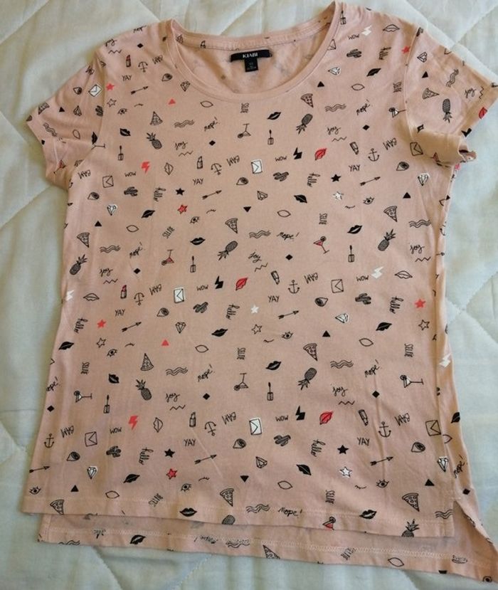 Tee Shirt Rose Pale Imprimé Devant Taille 14 Ans Kiabi