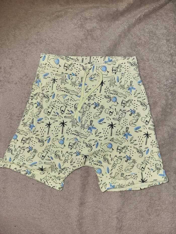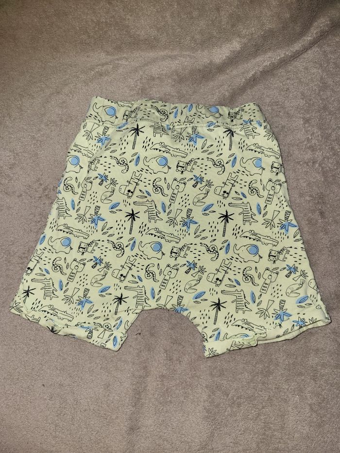 Short fin Kiabi Tons jaune motifs savane : girafe, serpent, tigre, éléphant, crocodile, palmiers... Ceinture élastique Grande poche sur le devant Très peu porté #virgy61garcon24mois