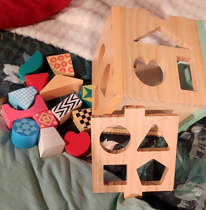 Bonjour, Je vends un jeu d'encastrement en bois, complet. "Ma boîte à formes en bois - Eveil 1er âge - 1 an et +". 10€ À : Gujan-Mestras, possibilité de me déplacer jusqu'à Lanton, envoi possible. ⚠️ JE REFUSE LES PAIEMENTS PAYPAL OU PAYLIB, MERCI Descriptif : Un jouet ludique pour travailler la concentration et la réflexion. Cette boîte à forme est le jeu d’encastrement idéal pour les enfants en bas âge, à partir de 12 mois. Grâce aux pièces variées de couleurs vives, l’enfant apprend à reconnaître les formes et les couleurs. Tout en jouant, l’enfant développe sa motricité fine. Les pièces sont adaptées à la taille des mains des tout-petits et sont faciles à manipuler. La boîte en bois sert également de rangement une fois le jeu terminé. Pour découvrir les formes et les couleurs. Ce jeu favorise la coordination oeil-main, le bambin doit adapter son mouvement et sa prise en main en fonction du trou dans lequel il souhaite mettre la pièce mais également faire preuve de réflexion pour le positionner au bon endroit. Grâce aux pièces de différentes tailles, l’enfant se corrige en toute autonomie. Ce label garantit un bois conforme aux procédures de gestion durable des forêts. Ce bois n'est pas lié à la déforestation et son extraction ne nuit pas à la biodiversité."