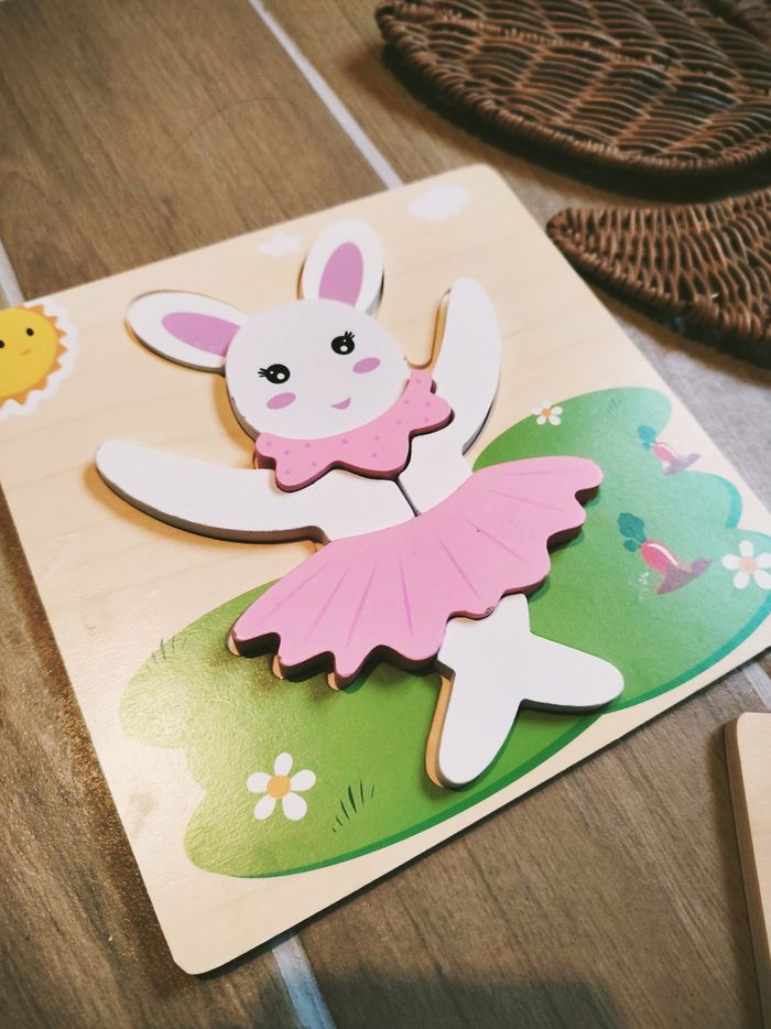🐰Lot de 2 petits puzzles en bois lapine danseuse étoile en tutu et abeille - photo numéro 3