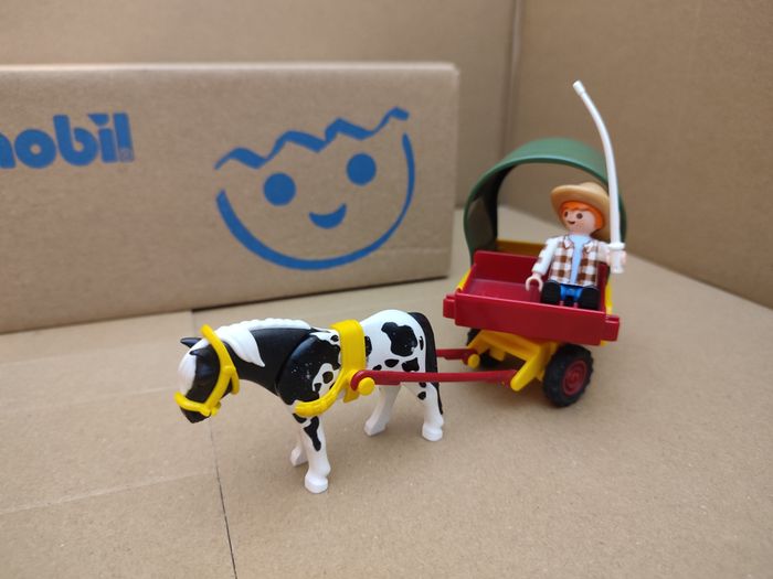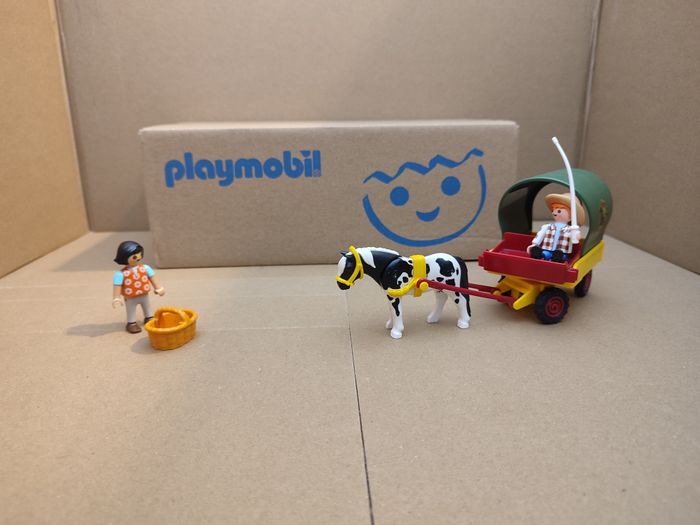 Playmobil d'occasion set 6948 Enfants avec Chariot et Poney 2 enfants 1 poney Chariot et son attelage (roule bien, l'avant tourne également) 1 panier, 1 fouet