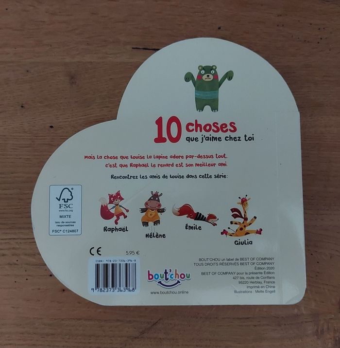 10 choses que j'aime chez toi Livre cartonné Bout'chou Très bon état