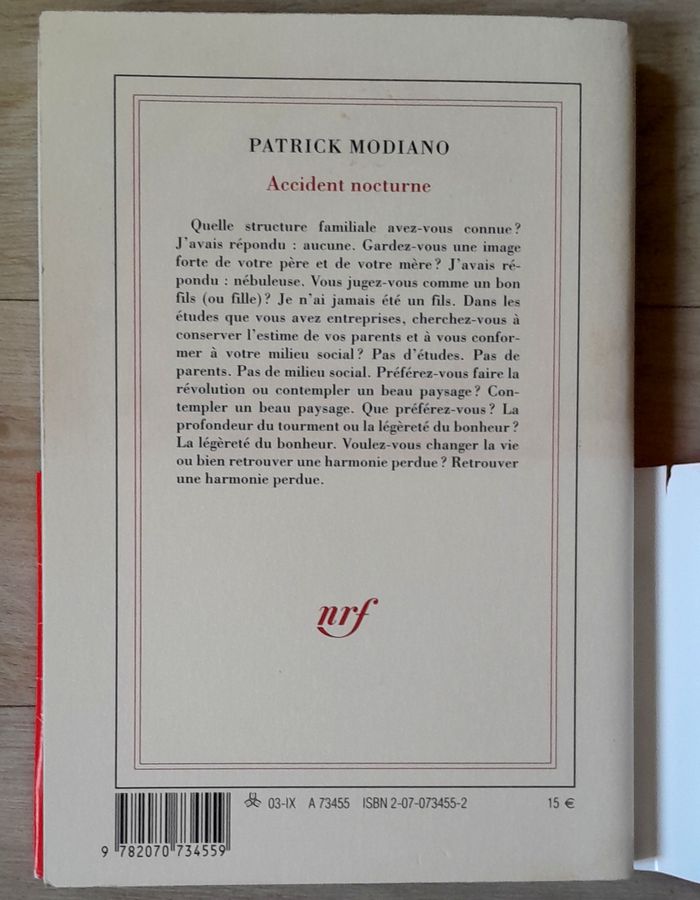 Patrick Modiano - Accident Nocturne (roman) - photo numéro 3
