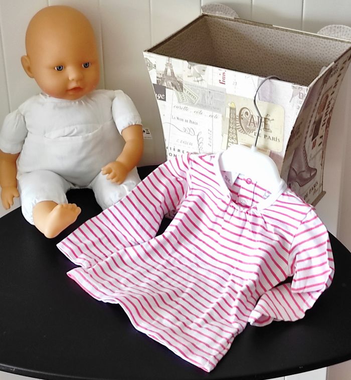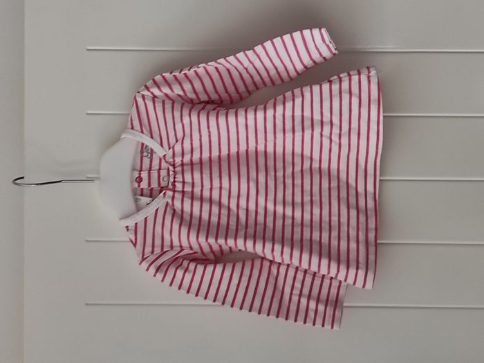 T-shirt bébé fille 12 mois – manches longues, rayé blanc et rose - photo numéro 1