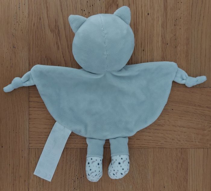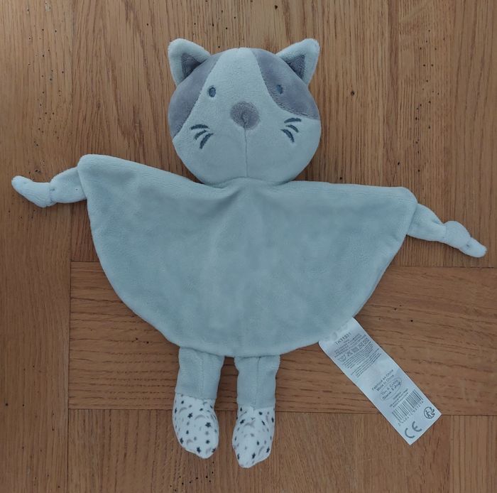 Doudou plat Chat grelots Tom & Kiddy Gris blanc étoiles lune Très bon état