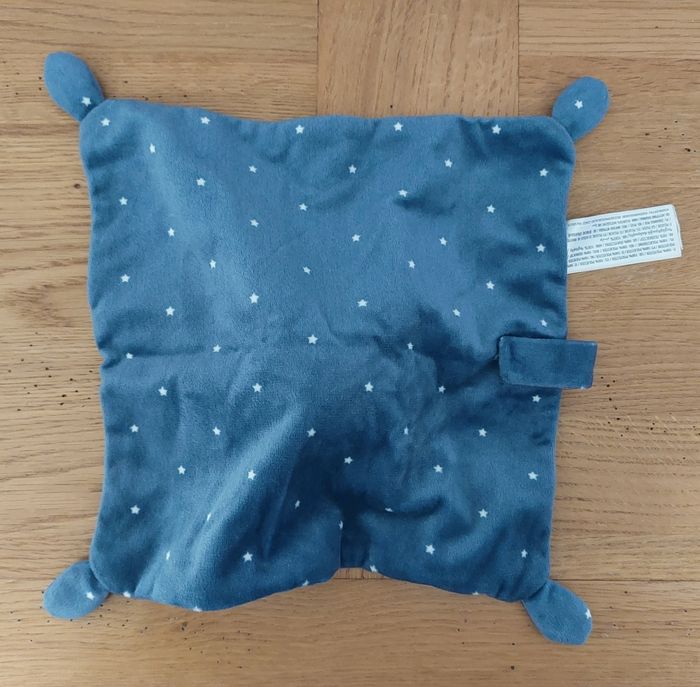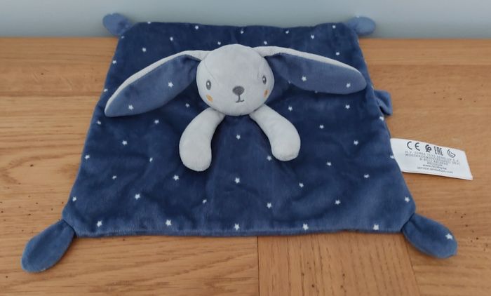Doudou plat Lapin bleu et gris avec étoiles Simba Toys Très bon état Pratique avec son accroche tétine avec scratch