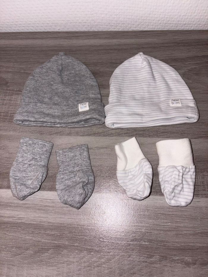 Lots de 2 bonnet et 2 paire de gants naissance