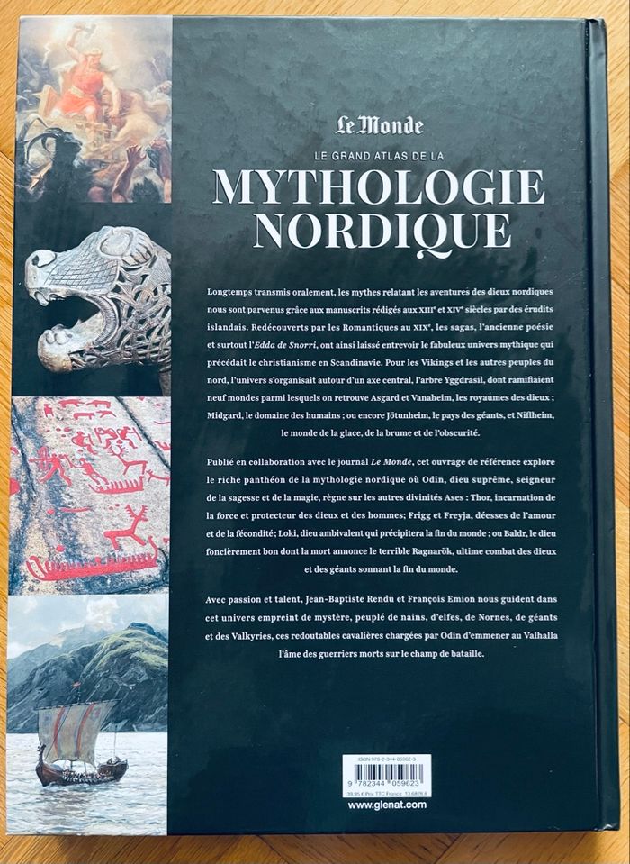 Un livre sublime pour les passionnés de mythologie nordique. Format : Broché, 224 pages Dimensions : 21,5 x 29,3 x 2,3 cm Poids : 1180 grammes Un Grand Atlas de référence pour découvrir la mythologie nordique, riche et captivante. Publié en collaboration avec le journal Le Monde, cet ouvrage de référence explore le riche panthéon de la mythologie nordique où Odin, dieu suprême, seigneur de la sagesse et de la magie, règne sur les autres divinités Ases : Thor, incarnation de la force et protecteur des dieux et des hommes ; Frigg et Freyja, déesses de l’amour et de la fécondité ; Loki, dieu ambivalent qui précipitera la fin du monde ; ou Baldr, le dieu foncièrement bon dont la mort annonce le terrible Ragnarök, ultime combat des dieux et des géants sonnant la fin du monde. Avec passion et talent, Jean-Baptiste Rendu et François Emion nous guident dans cet univers empreint de mystère, peuplé de nains, d’elfes, de Nornes, de géants et des Valkyries, ces redoutables cavalières chargées par Odin d’emmener au Valhalla l’âme des guerriers morts sur le champ de bataille. 💌Dépôt du colis rapide et soignée. 🍀N’hésitez pas à me contacter si vous avez besoin de plus de photos/vidéos ou infos. 🌹J’accepte également les remises en main propre à Vannes. ✨J’ai d’autres livres sur la même thématique , n’hésitez pas à me demander.