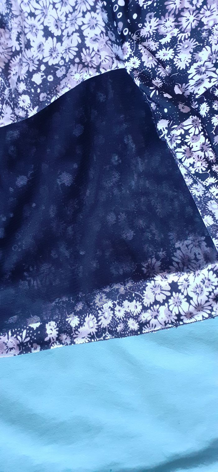 Vends une tunique manches 3/4, tissu synthétique doublé, forme trapèze avec côtés plus longs, couleur noir avec petites fleurs blanches et beige, marque Cache Cache, taille M. Longueur dans le dos : 70 cm.