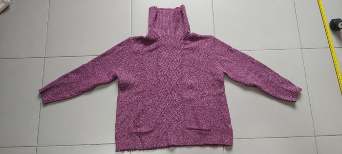 .Pull col roulé 2 poches Couleur violet et un peu de blanc, avec fils violet brillant Taille 5 #carinedditaille5femme #carineddiXXLfemme