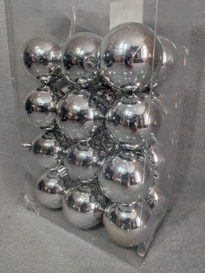 Lot 24 boules Argenté - Plastique Incassable - 6 cm