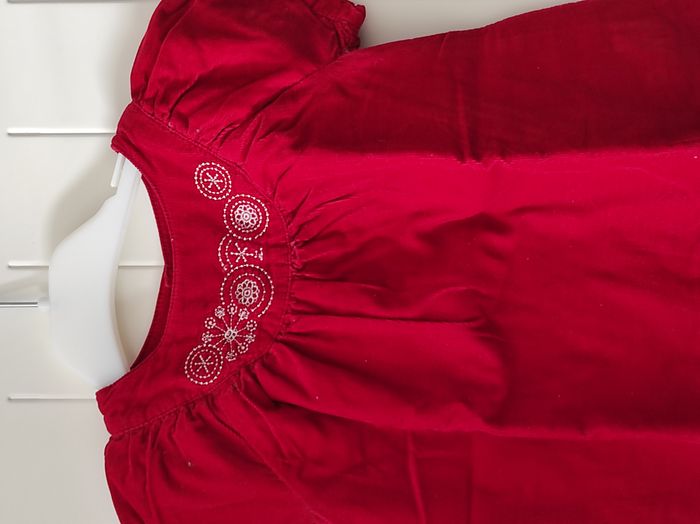 Très belle robe velours doublée coton bébé fille 12 mois – rouge floral - photo numéro 2