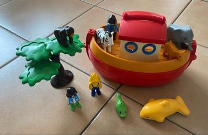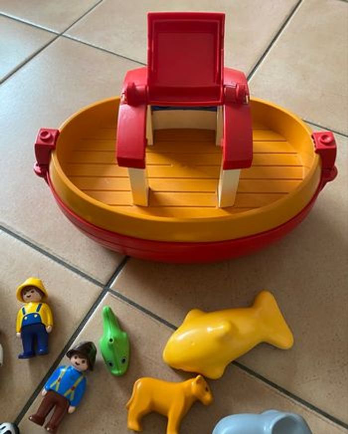 Lot avec le bateau de l’arche de Noé (il n’a plus la poignée) Playmobil 123 Vous achetez ce que vous voyez sur les photos