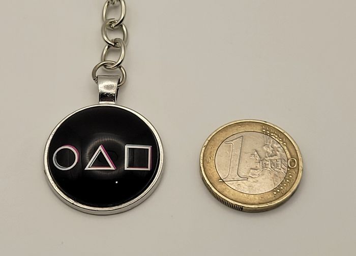 PORTE CLES SQUID GAME! NEUF ! Diametre du pendentif SQUID GAME: 2,8 cms. Accroche metal argenté . Hauteur totale : 9 cms N'hésitez pas à regarder mes autres ventes. Porte clé neuf sous blister . Envoi soigné et rapide
