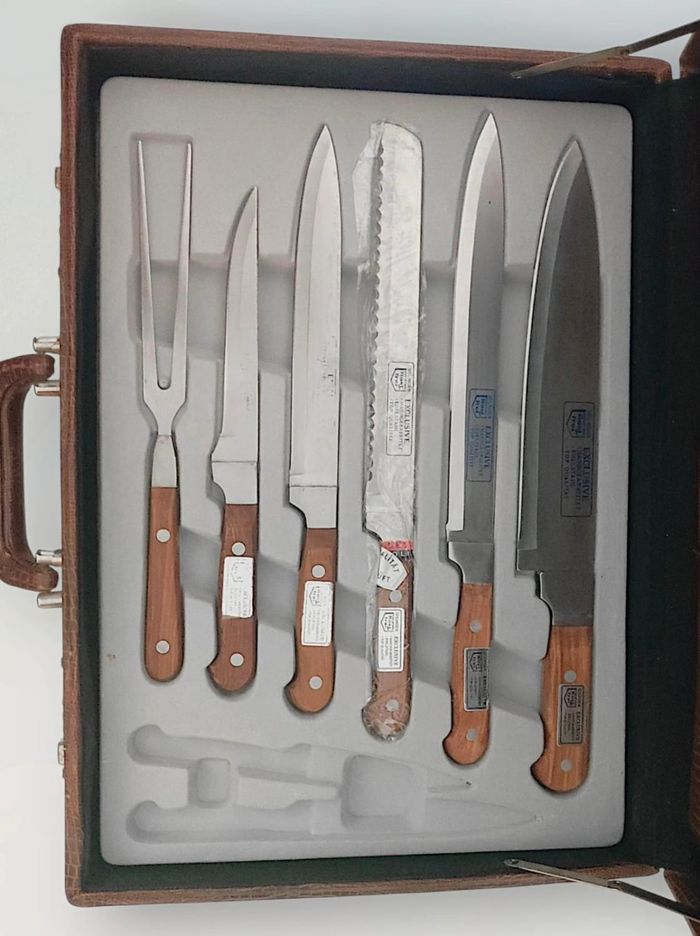 - 6 couteaux d'offices (dont 1 couteau à pain et 1 hache / hachette de cuisine)