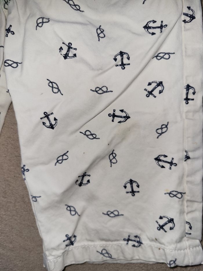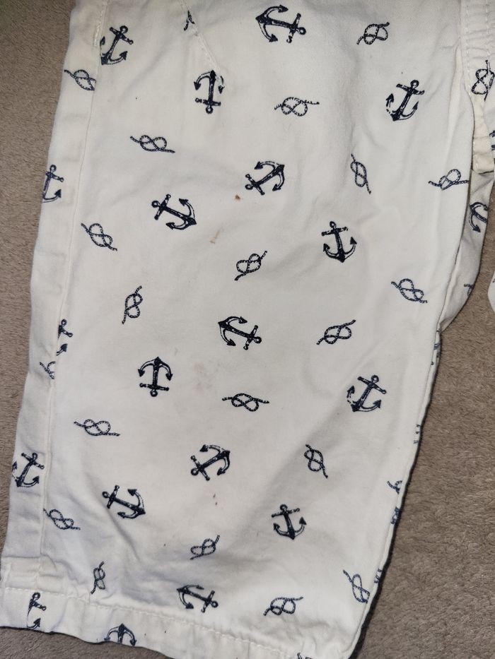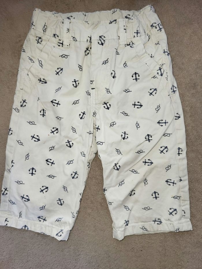 Lot composé - d'un short beige Orchestra (2-3 petites tâches) - d'un short fin blanc Orchestra motif ancrés se bateau, tâché à plusieurs endroits - d'un short écru Sergent Major bien porté #virgy61garcon4ans