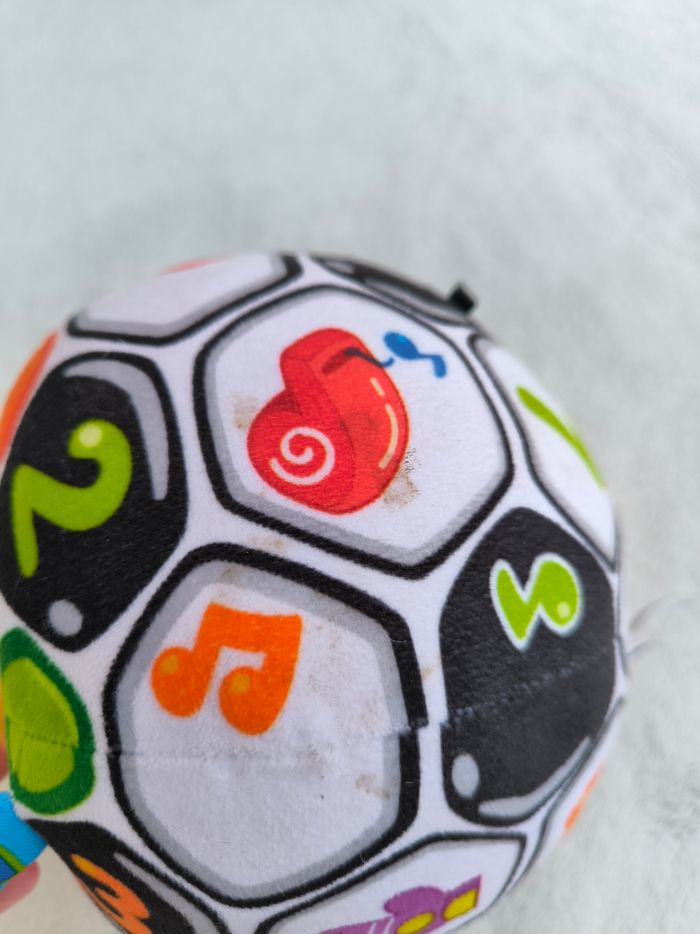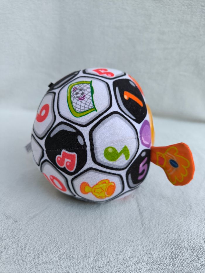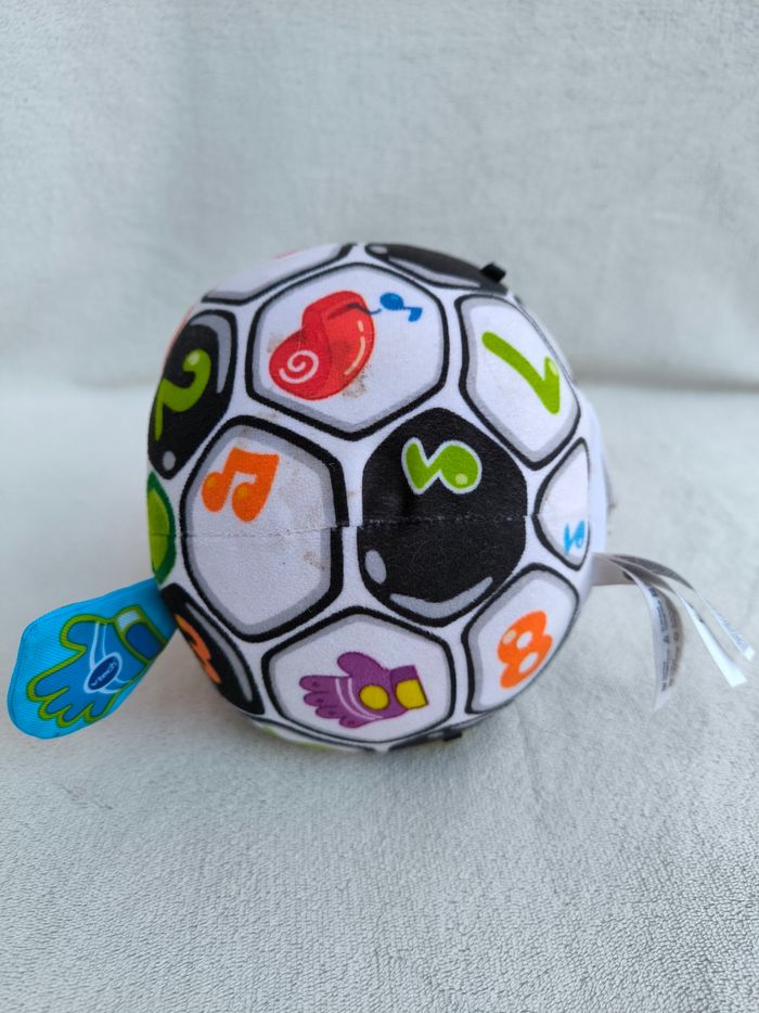 Jouet d'éveil interactif, éducatif et musical Zozo mon ballon rigolo Marque VTech • Ballon de foot électronique • Apprentissage des couleurs, chiffres et directions • Tissu doux et mou, mains en papier bruissant • Module électronique amovible • Tissu taché Fonctionne Piles incluses En bon état à cause des taches #evelyne_jeux