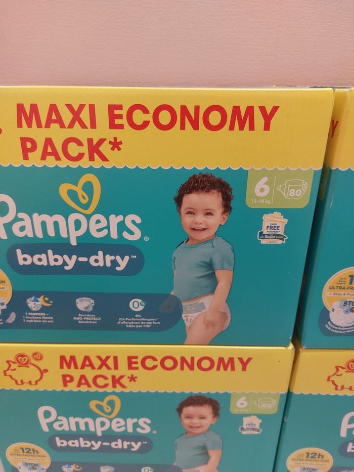 4 Maxi Economic pack de 80 couches pampers baby dry taille 6. Nb: 320 couches au total Envoi rapide et soigné!
