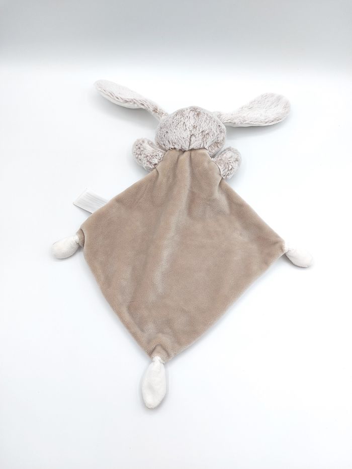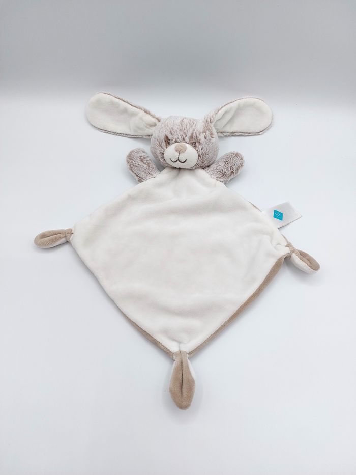 Doudou plat lapin TEX Baby blanc crème marron beige taupe Carrefour Nicotoy - photo numéro 1