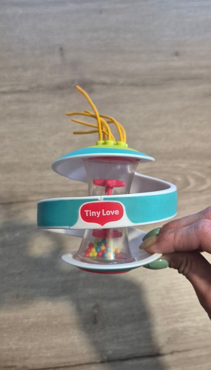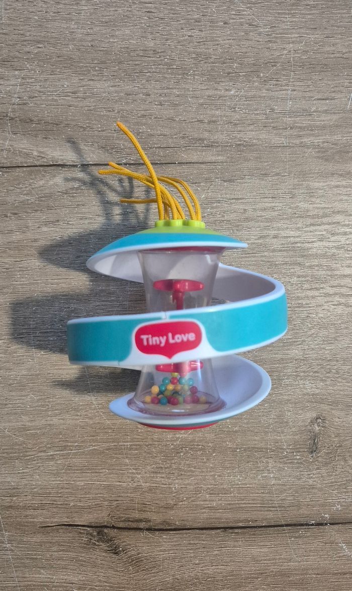 Balle spirale d'activités Inclut un bâton de pluie, des ficelles qui dépassent, bonne prise en main pour bébé Tiny Love Très bon état