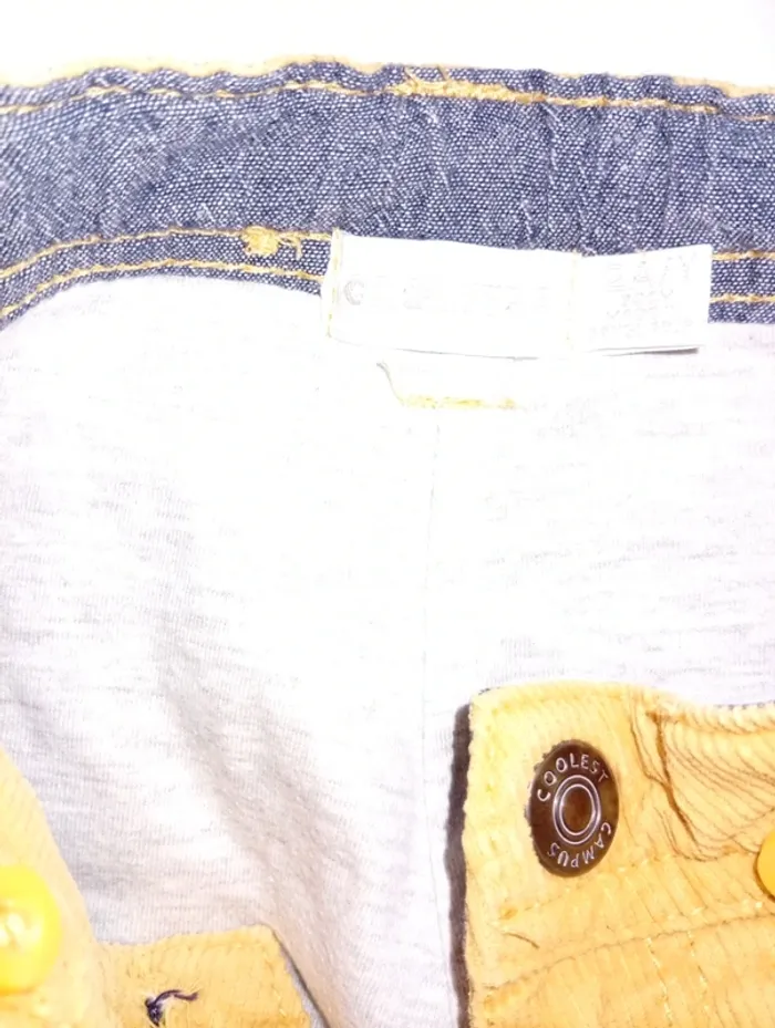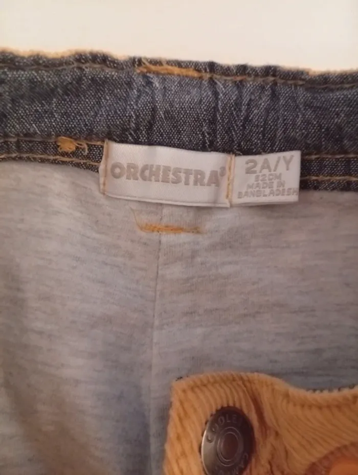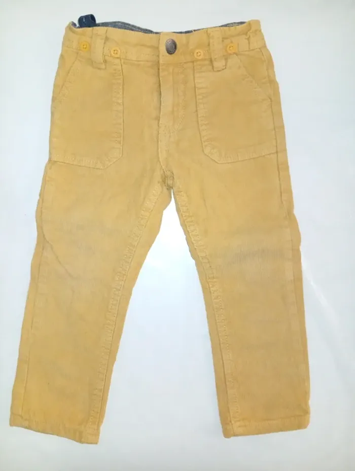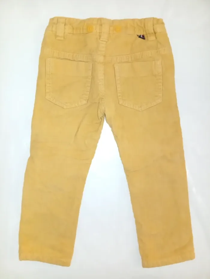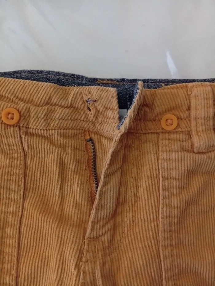 Pantalon côtelé taille 2 ans de la marque Orchestra; fermeture à agrafe , il manque la parti ou s'attache l'agrafe mais tient dans le petit trou voir photo ; Possibilité de mettre des bretelle bouton pour accrocher .