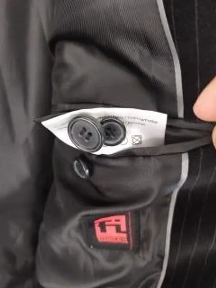 Veste en velours a rayure très légères. taille 52 de la marque FRASCATI . à l'intérieur au niveau du bras et le l'omoplate droit ,la doublure s'est décousue , par manque de temps je n'ai pu le recoudre .