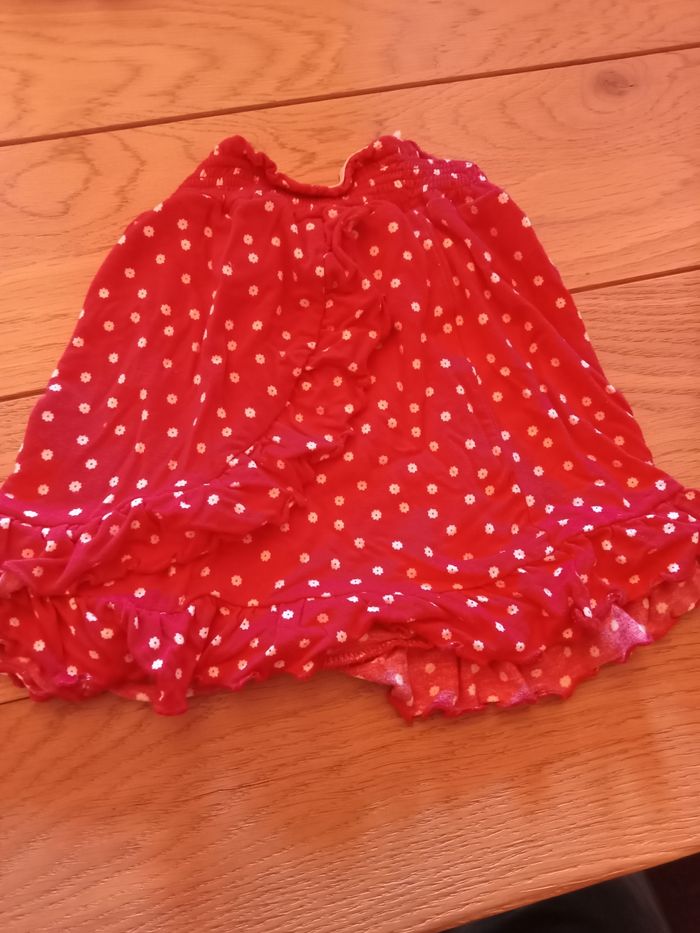 Jupe avec un petit volant par-dessus avec des petites fleurs blanches Marque Charlie et prune