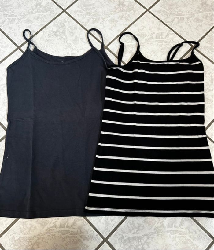 Lot de 2 tops marine et noir à lignes blanches – Taille S - Très bon état