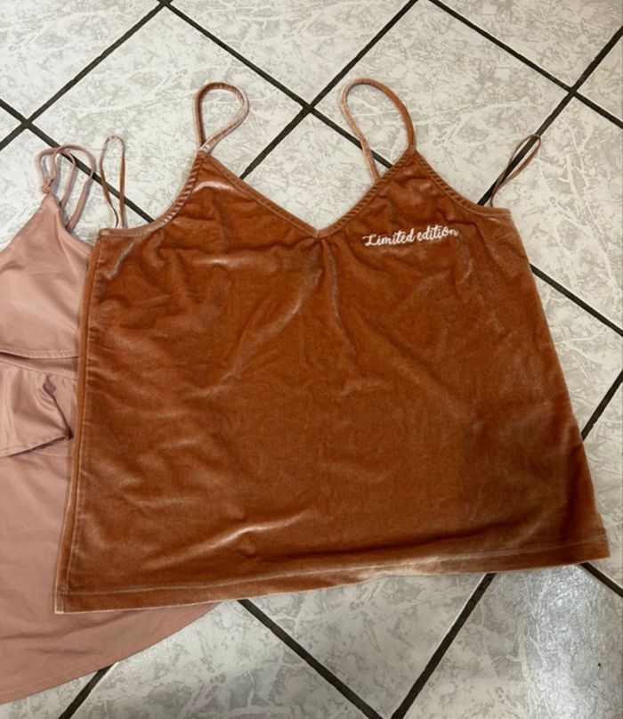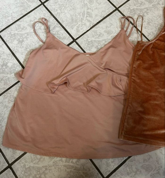 Lot de 2 tops rose et rouille – H&M & JBC – Tailles S/M - Très bon état - photo numéro 2