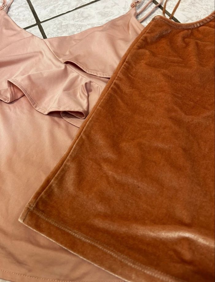 Lot de 2 tops : • 1 rose de la marque H&M, taille M • 1 rouille de la marque JBC, taille S Portés 2 à 3 fois, en très bon état. Les deux taillent exactement de la même manière. Parfaits pour un look estival, chic ou décontracté.