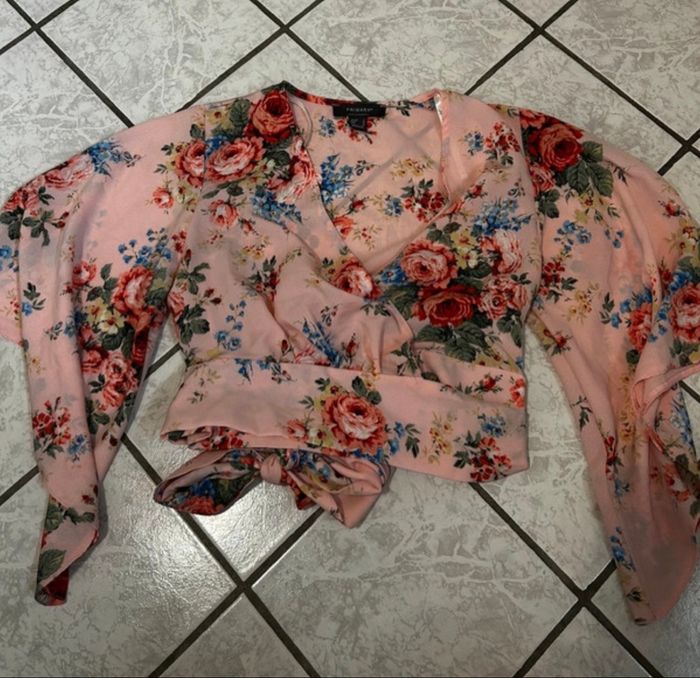 Blouse rose à fleurs de la marque Primark, taille S. Portée 3 fois, en très bon état. Féminine et légère, parfaite pour un look estival, chic ou décontracté.