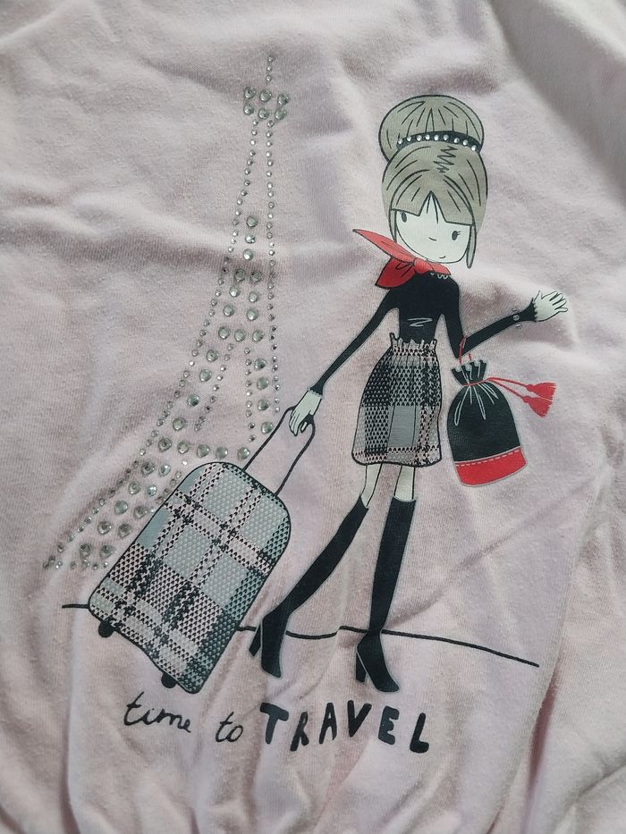 💖 Trop mimi ce haut rose “Time to travel” 👧✨ Style girly, petit look parisien et strass brillants 💼💎 Taille 6 ans – très bon état 🌷 #hautfille #vetementfille #modeenfant #6ans #lookgirly