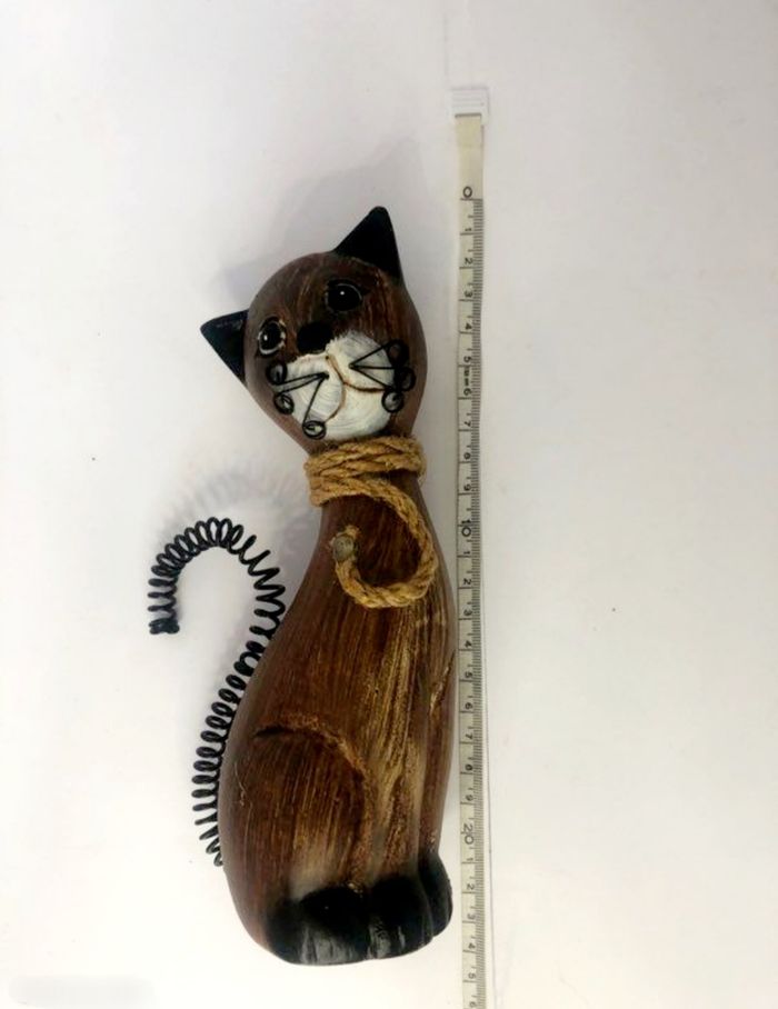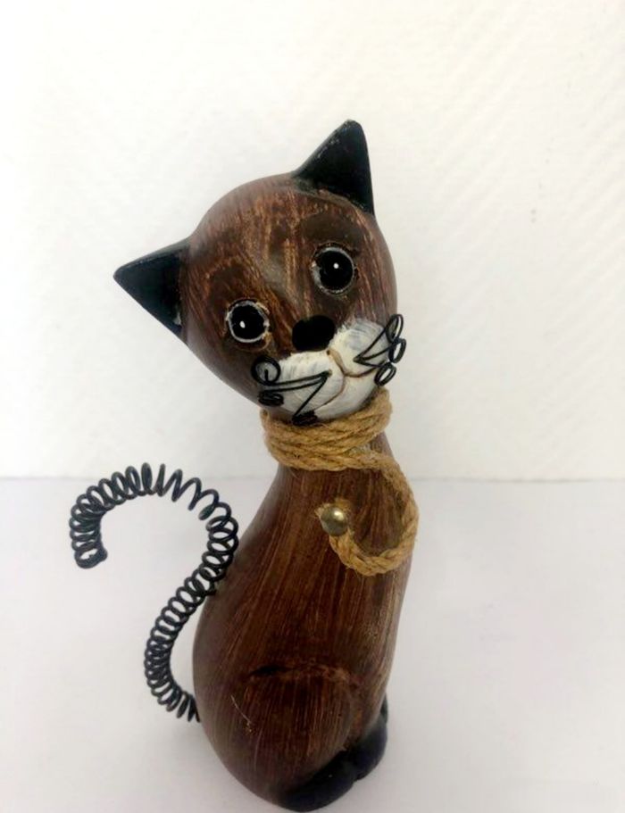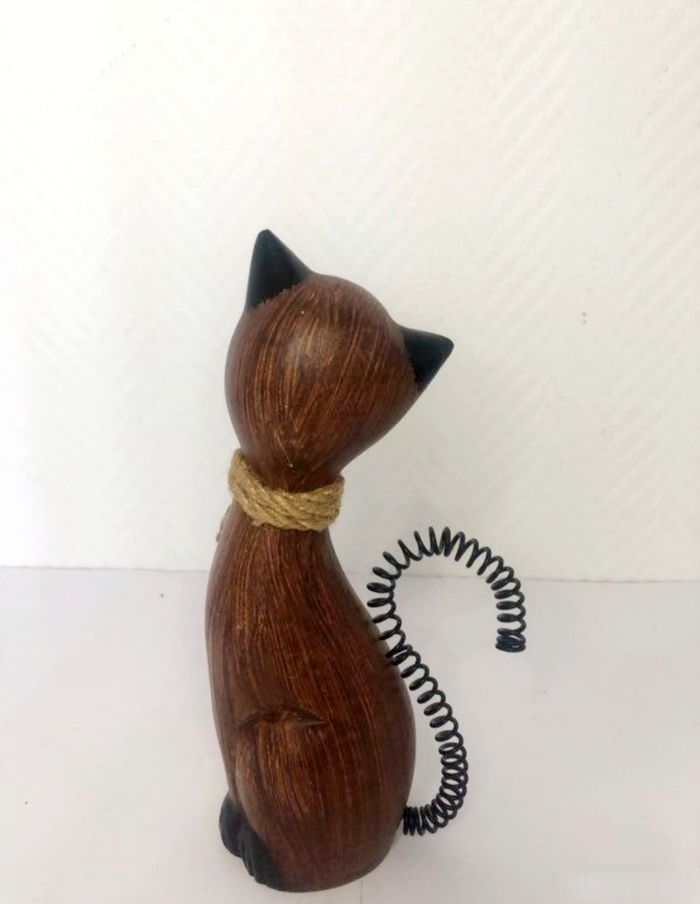 Statuette décorative en forme de chat fantaisie. - Type de produit : Statuette décorative - Style : Fantaisie - Matière : Bois et métal En très bon état Dimensions en photo