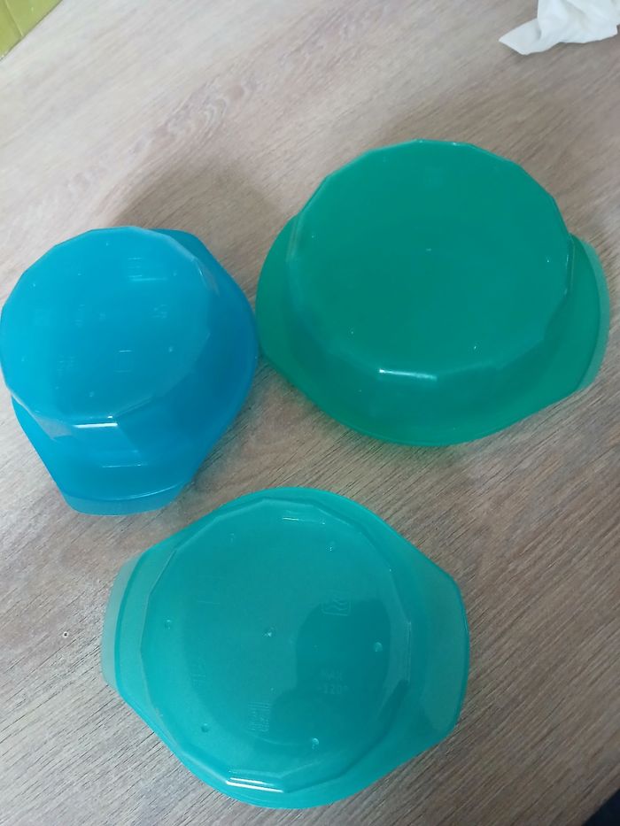 4 boites hermétique 🔹 État : Très bon état, 🔹 Couleur : Bleu vert 🔹 Matière : Plastique 📦 Envoi rapide et soigné