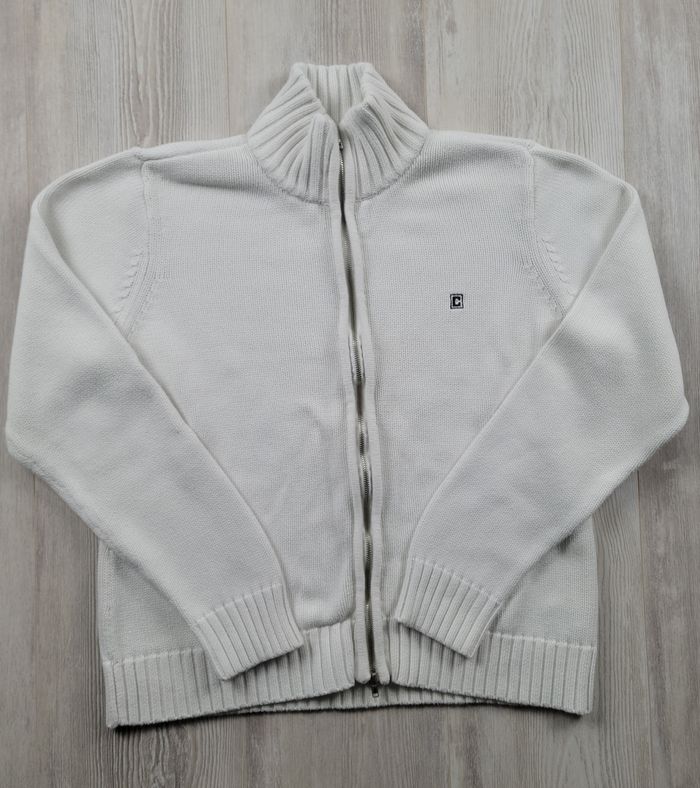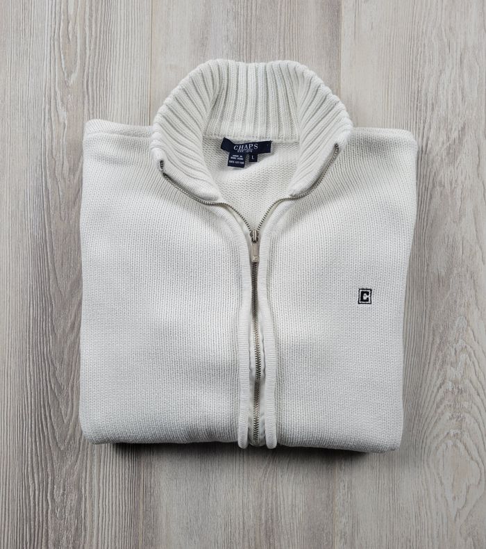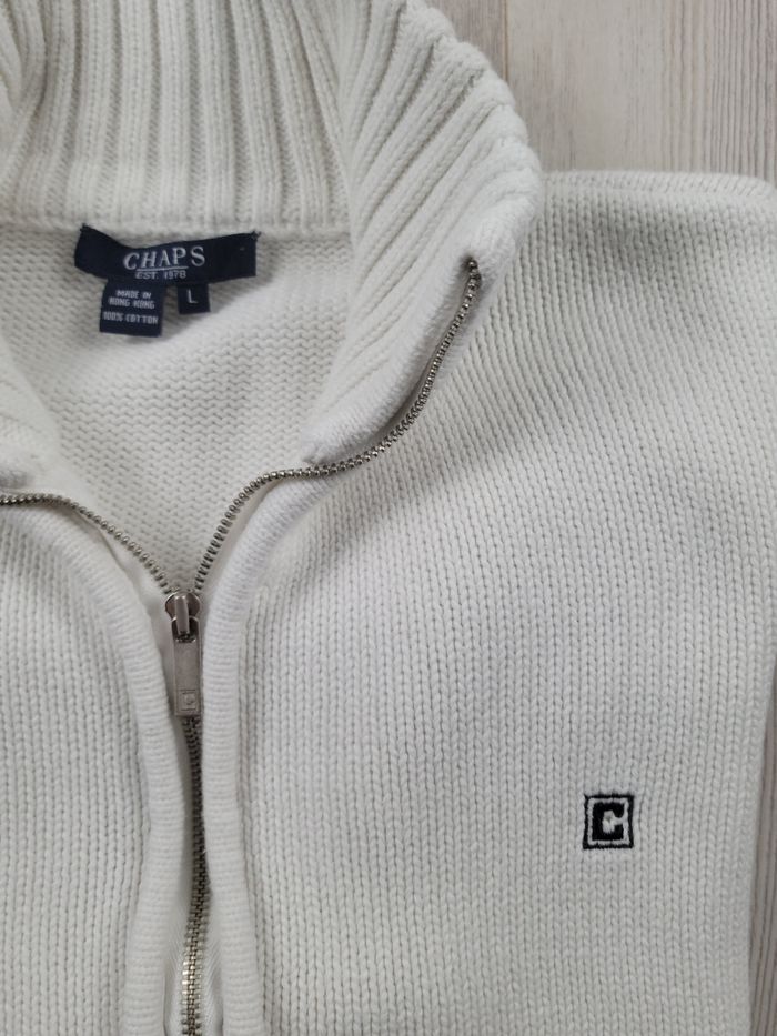 Sweat Chaps blanc à fermeture zip intégrale, taille L (correspond plutôt à un M, voir mesures : 39 cm d’épaules).