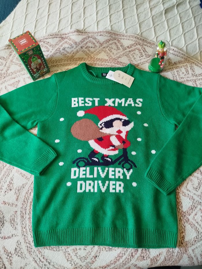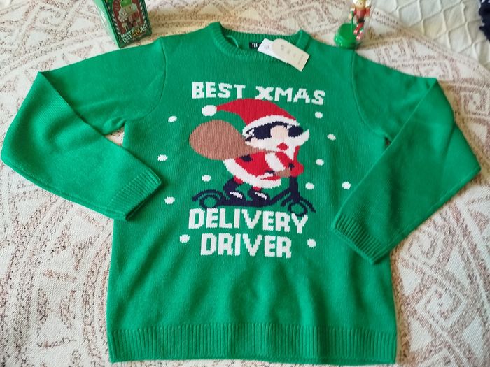 🎅 Pull de Noël “Best Xmas Delivery Driver” – Taille M – Neuf avec étiquette ! 🎁 Tu livres de la bonne humeur (ou juste des cadeaux en retard) ? Ce pull est fait pour toi ! Le Père Noël moderne, lunettes de soleil et sac sur le dos, prêt à slalomer entre les flocons comme un pro de la livraison express. 💚 Taille M – jamais porté, encore avec étiquette 🧶 Tout doux, tout vert, tout festif 🚀 Parfait pour ton repas de Noël, ton concours de pulls moches, ou pour livrer les cadeaux avec style 🎄 Envoi rapide et emballé avec amour (Georgie style ✨