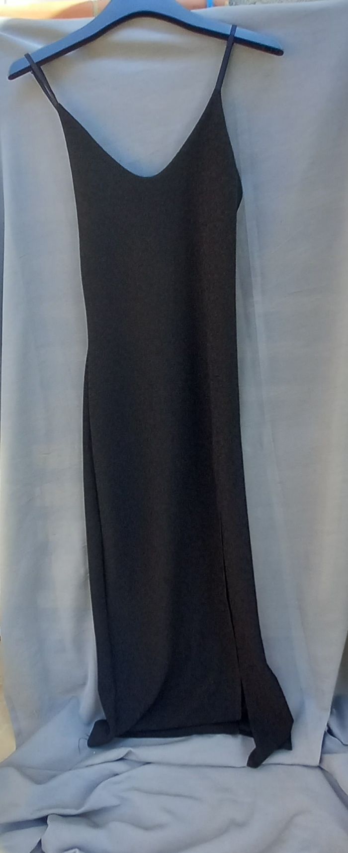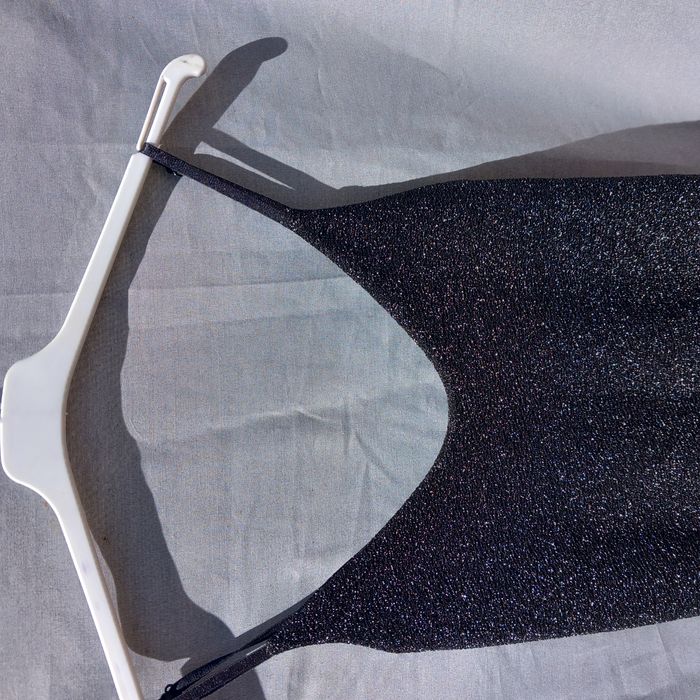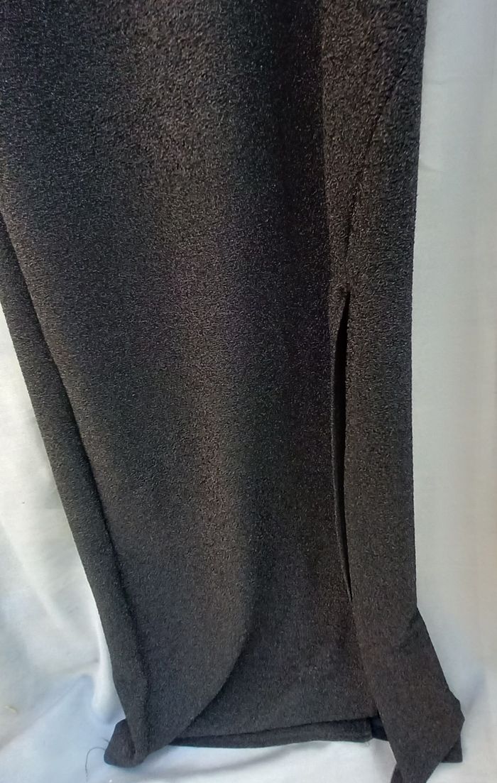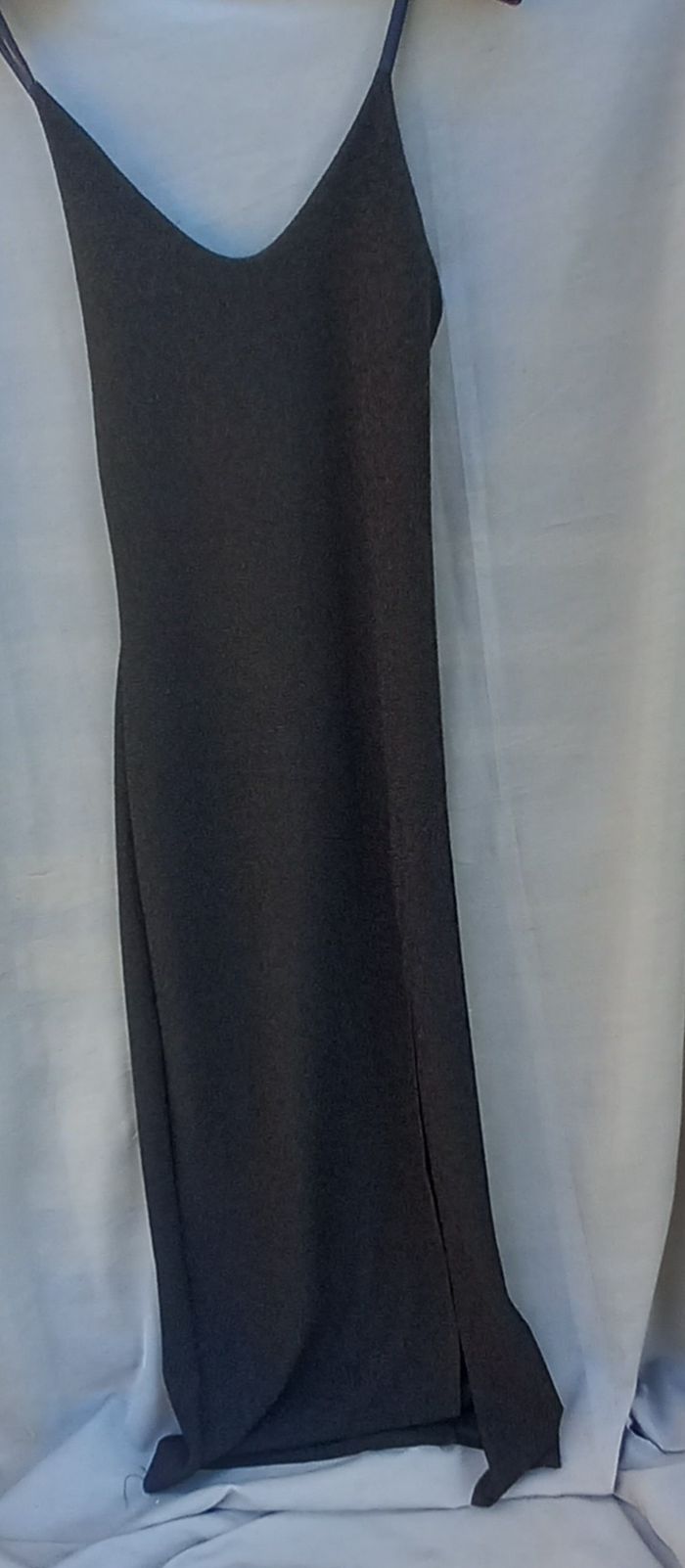 bretelles réglables, à enfiler, coloris noir fil métallique (effet brillant), Fabriqué en France, 97% polyester 3% élasthanne, article neuf - jamais porté, largeur aisselles 37 cm Longueur aisselles-bas 133 cm, longueur ouverture 73cm possibilité de faire une offre en lots
