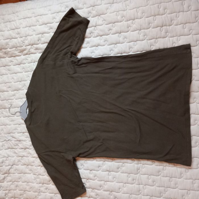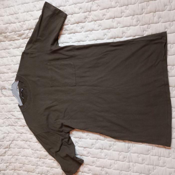 - Robe tee-shirt Bershka Manches 3/4, à enfiler, col rond, robe droite, coloris kaki, poche poitrine, largeur épaules 51 cm - aisselles 55 cm, Longueur épaule-bas 78 cm- aisselles-bas 56 cm, Longueur manche épaule-bas 29cm