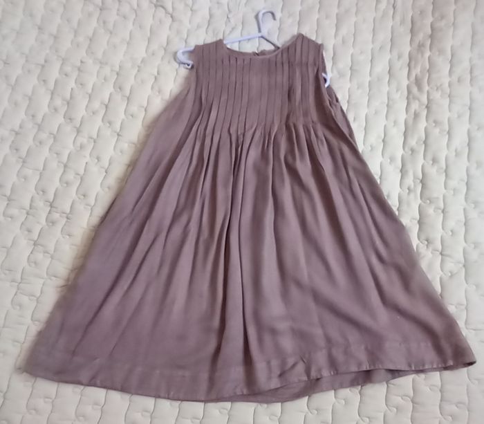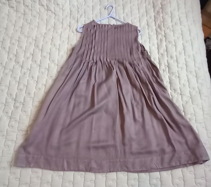 - Robe School Rag sans manches, coloris taupe, Zip au dos avec crochet (manque 1 crochet), col arrondi, bas évasé, pinces poitrine, haut avec plis, 100% viscose, largeur épaules 32 cm , aisselles 47 cm, longueur épaules-bas 70 cm et aisselles-bas 61 cm