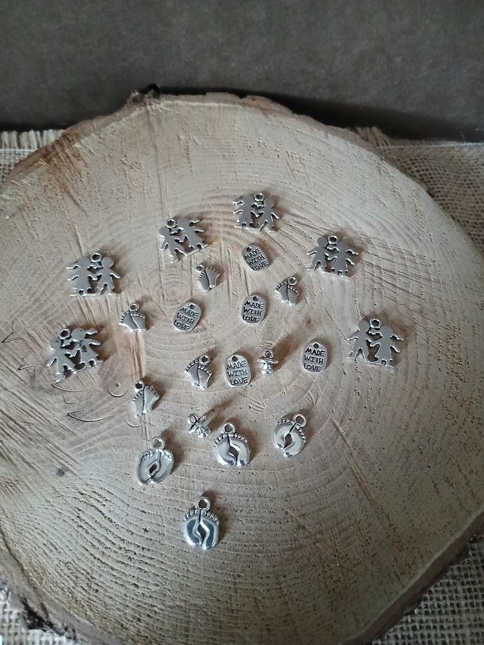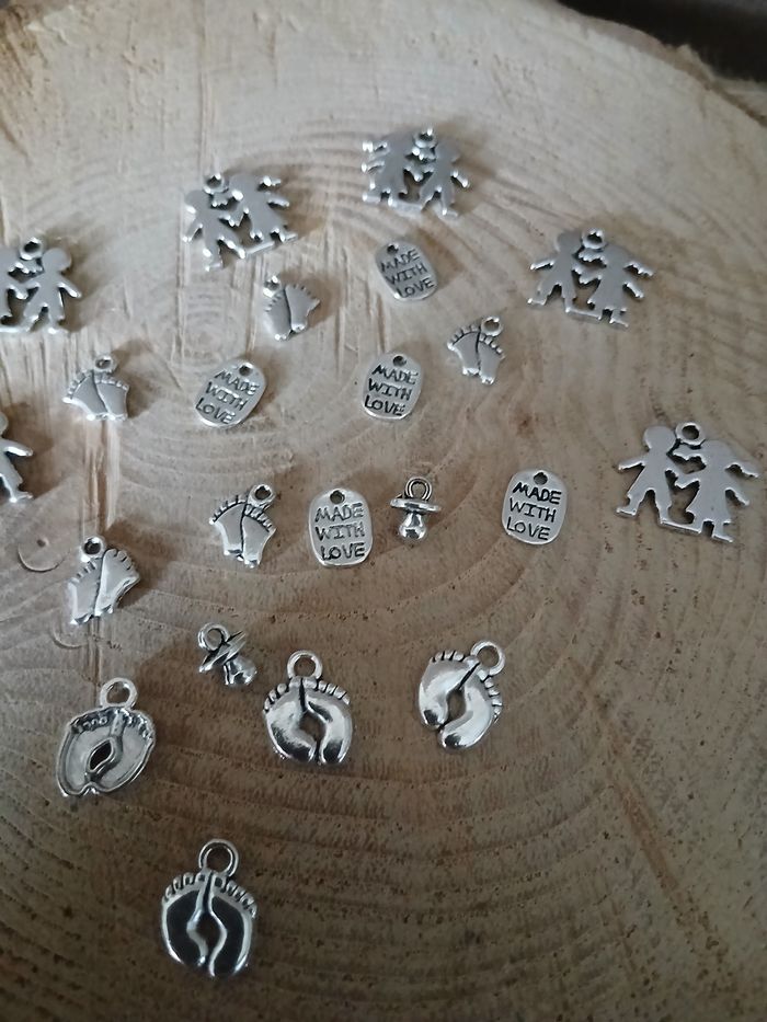 Lot de 22 breloques enfant pieds bébé teuteute tétine message