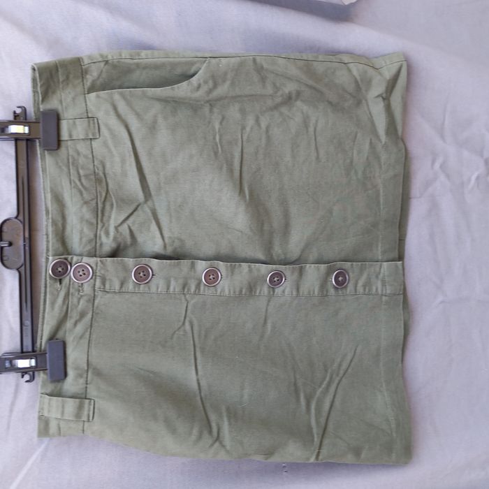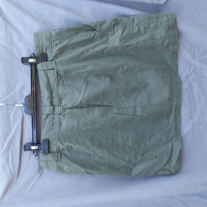 - Jupe Esmara, coloris kaki, boutonnage, ceinture avec passants, 2 poches, 55% lin 45% coton, largeur taille 42 cm, longueur 43 cm